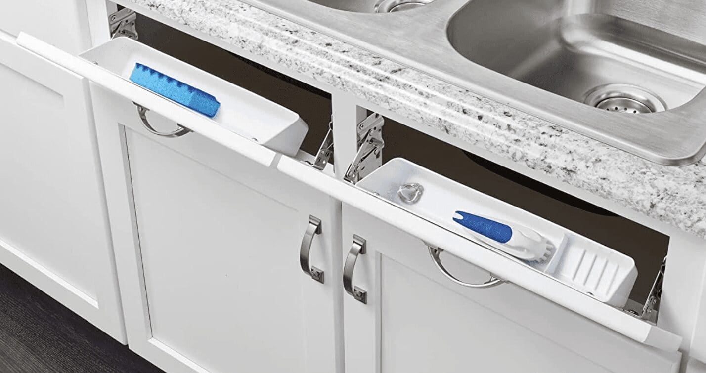 SB-HTIPOUTHINGE….This kitchen sink tray tilt hinge is perfect addition for kitchen sinks as it allows the panel in front of the sink to tip out up to 45°, which offers the ability to add a small tray for storing small items. The maximum opening angle is adjustable, making it customizable for your needs. Made of nickel plated steel, this hinge is durable and is the perfect addition to hide those sponges and cleaning tools in your sink. Sold in pairs(hinges only).
