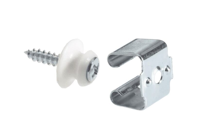 MD-1000Z…Bi-Fold Door Hold Back Catch. Eliminate “bounce-back” on bifold cabinet doors to ensure full visibility for TV picture and to make easy accessibility to all BiFold Door uses. Nylon Striker with incorporated screw and spring-steel locking clip. Economical and easy to install. Striker 1/2″ Diameter Steel Clip 1/2″ x 9/16″. Sold by the Each.