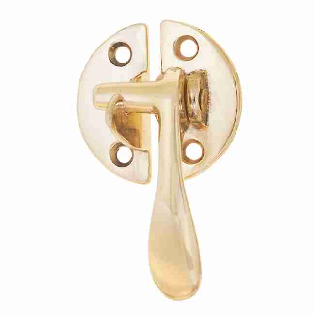 BM-1642PB… Boone cabinet flush latch. Boone Hoosier cabinet flush mounted brass right hand latch. Latch base measures 1-1/2″ high x 3/4″ wide. Projects 7/8″ when mounted. Catch base is 1-1/2″ high x 3/4″ wide. Projects 1-3/16″ when mounted. Also used on Sellers, Napanee, Wilson, Hoosier and others. Sold individually with mounting hardware.