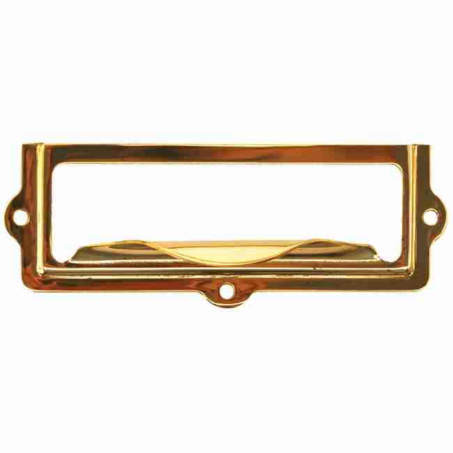 BM-1401PB Brass File Label Card Holder with Finger Pull for file cabinets. Sold by the each. Screws Included. Overall 1 x 2-13/16 inches. Card Size 7/8 high x 2-7/16 inches wide.