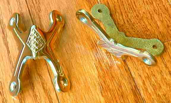 TKC-22 Cast Brass 4 Legged Trunk Corner Clamp. Overall 2-5/8 Inches Long x 1-13/16″ wide. Legs 1-1/4″ long from center. Sold by each not pairs.