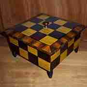 AA-12850…Checkered Finish Wooden Box with Lid. Box is on legs which are 1-3/8″ tall. Box is 8″x8″x 3-1/4″ tall. Lid is 9″x9″. Overall box is 6″ tall. Sold by each.