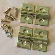 D-2707 Brass Plated Rear Mounted Swivel Mirror Support Set of Fasteners. Mirror support overall measures 1 1/4″high x 2″wide…Each Clamp 1 1/4″h x 3/4″ wide…Pins- 2″ long x 1/4″ diameter. Traditional American Style. Set mounts one mirror.