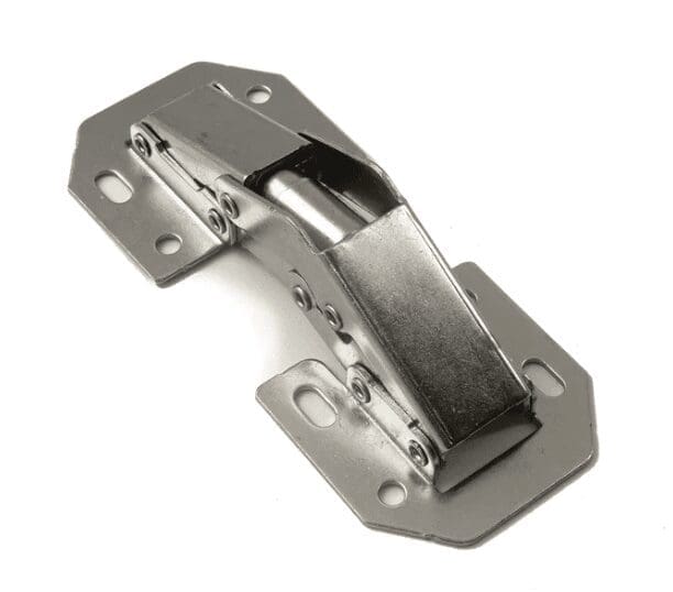HC2000MZ.. Concealed Non Bore Hinge. Sold by the Each. not pairs Surface Mounted Concealed Hinge 90 degree door opening, without drilling holes Fully Adjustable! One hinge fits full overlay, half overlay & inset hinges. Hinge is 4-1/8 inches by 1-3/4 inches overall and 1 inch high. Each hinge plate is approximately 1-3/4″ x 1-5/8″. Since door opens with flush interior surfaces, these hinges are ideal for kitchen cabinet doors, electronic access doors and drop flaps on cabinets. Small in size, proven strongeconomical. Nickel finish, spring closing. Hinge weight capacities as follows: 2 hinges = 13.22 pounds or 6 kgs, 3 hinges = 24.25 pounds or 11 kgs, 4 hinges = 35.27 pounds or 16 kgs, 5 hinges = 59.91 pounds or 24 kgs. 59.91 pounds is the limit.