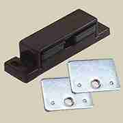 MGP76/64B… Extra High Rise Double Magnet Two 9lb. pull swivel magnets are raised 3/8″ above ground level to accomodate gaps between door and frame and make location of strike easier. Adjustment slots are on 32mm multiples (64mm apart) and are oversize (1/2″ long) Dark Brown Nylon. May be used on two separate doors or as one 18lb magnet with a long strike plate on heavy doors. Sold by the Each.