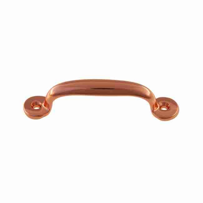 BM-1130CPR.. Copper Plated Steel Hoosier Type Drawer Pull Bin Pull. 3 1/2 inches long x 5/8 inches wide with 3 inch centers Sold by each.