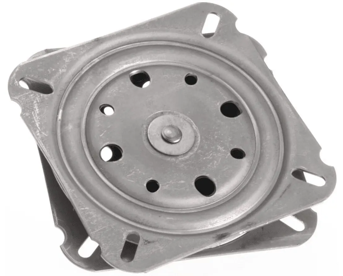 X-48614U… Industrial heavy duty swivel. Heavy steel plates with strong ball-bearing raceways can accommodate loads under frequent use. 6-3/4″ Square x 13/16″ Thick. Hole spacing 5-1/4″. These require heavy loads (Rated for 300lbs) to activate: The heavier the load the easier they run. May or may not be the best choice for bar stools. Sold individually.