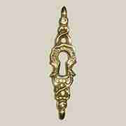 B-0202.. Vertical Keyhole Cover in Cast Brass. Used on wardrobe doors and china cabinet doors. 2-1/2 inches high x 1/2 inches wide. Sold by each