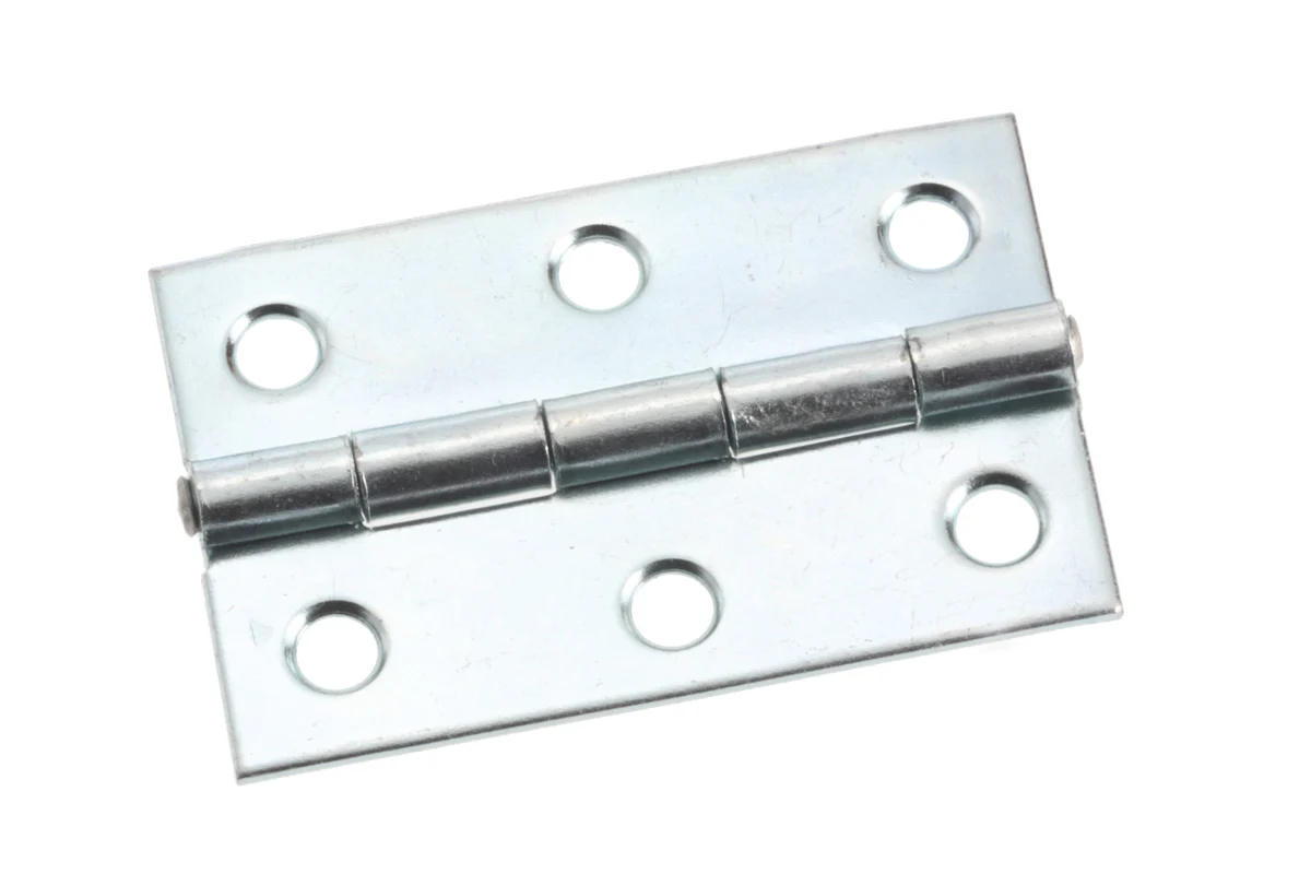 H-6662N… Light narrow butt hinge. Overall measuring 2″ long x 1-9/16″ wide. Zinc plated .053 gauge steel. each Zinc Plated. Fast pin non swaged, neat looking steel hinges for small thin doors. They are fast pin, non swaged and are composed of two rectangular leaves with screw holes. When the door leaves meet (“butt” together), only the pin shows. Sold individually.