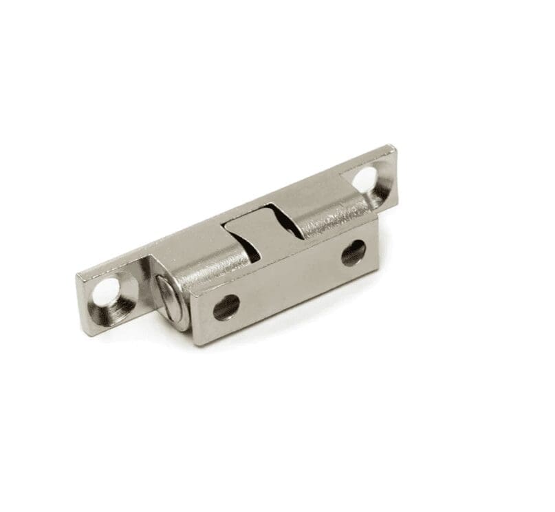 MKK-240BC… Nickel adjustable ball catch. Satin nickel plated solid brass double ball catch . Adjustable tension with double spring double ball catches provide positive closing action and secure holding. Extruded brass body and strikes with chrome steel balls, these are very heavy duty and made to last. Overall measurements of 2-3/8″ long x 15/16″ wide. Sold individually.