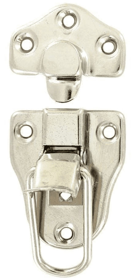 OBD-50XNP… Nickel drawbolt latch. Flush mounted nickel plated steel. Overall measuring 1-11/16″ wide x 3-1/4″ tall. These are very versatile, as they are small enough to use on suitcases and other boxes of that size, but also big enough to use on steamer trunks as well. Typically, there was one on either side of the lock, as they were used on many early trunks along with keyed trunk locks. Sold individually.