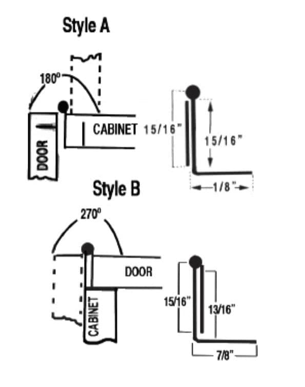 H-98N… Nickel Plated Steel Loose Pin Multi Purpose Hinge. Two hinges in one! Multi purpose reversing hinge in Nickel. Unique loose pin allows change from a flush inset door hinge (“A”) or remove pin and reverse small leaf to create an overlay door hinge (“B”) Inset door opens 180 degrees, overlay door opens 270 degrees. 054 Steel plated in nickel. Sold individually.