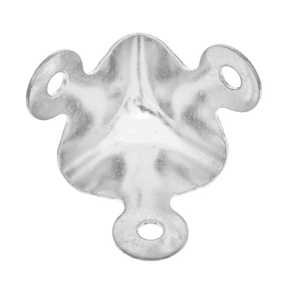OBF-3NP.. Nickel Plated Trunk Corner. Size 1.25″ x 1.25″ x 1.25″. Three mounting holes .16″ diameter holes, .25 internal radius. Approximate 20 Gauge Thick Steel, Bright Nickel. Sold by each.