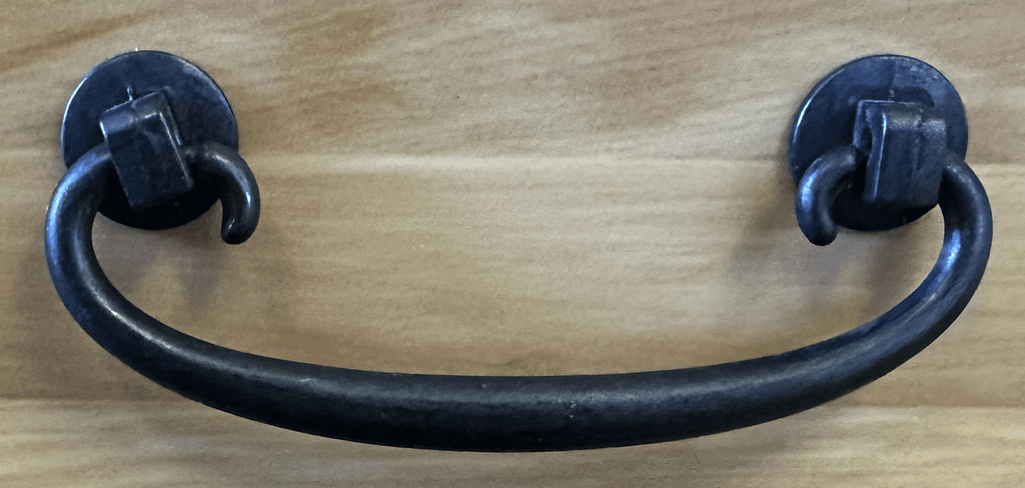 D-521WHERSH… Refined mission handle. Wrought iron finish Mission Style, Arts and Craft bail pull. An understated refined Look, when less means more. Even used on some asian style furniture. 4-1/16″ long with 3″ centers and it attaches with 2 machine screws from the rear, that are supplied! Sold individually.
