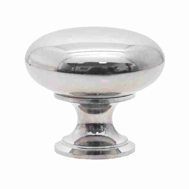 BM-1238PN… Round nickel knob. Nickel plated solid cast brass. Overall measuring 1-1/4″ in diameter with a projection of 1-1/8″. A very elegant and classic nickel knob with a pedastal shaped base. Sold individually with mounting hardware.
