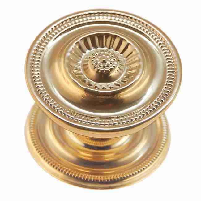 BM-1297PB… Sheraton Hepplewhite knob. Large solid brass knob that is 1-5/8″ in diameter. It projects 1-1/8″. This style knob was started in the late 1700s by George Hepplewhite and Thomas Sheraton. Still used on current furniture designs. Great Looking knob at a good price. Sold individually with mounting hardware!