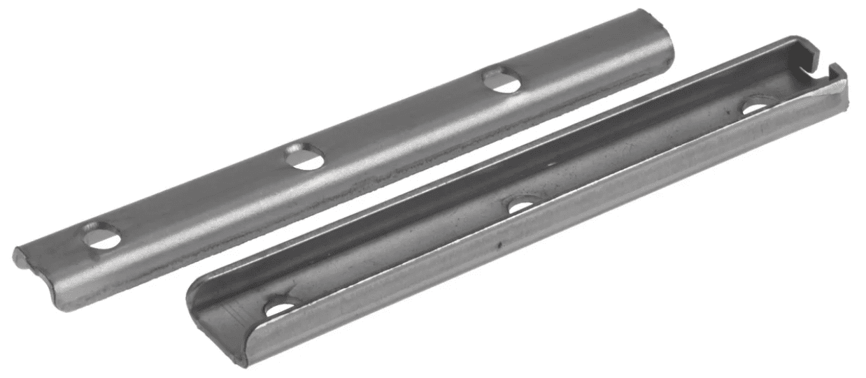 K-2020/4U… Tapered connector 4″. Male and female interlocking tapered slide fastener. Wedge shaped fasteners ease the job of hanging or connecting flush fixtures, provides an invisible joint of great strength for beds, chair backs, chair arms, wall-hung cabinets and more! Extra heavy gauge cold rolled steel, only 1/4″ thick and 5/8″ wide by 4″ long. Easy insertion locks tight with pressure when bottoming. Fasteners sold by 2 piece set (male & female). See pictures for examples of mounting.