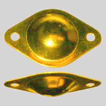 D-4956.. Brass Plated Steel Trunk Bottom Stud Feet. Used as a foot on the bottom of many antique trunks and foot lockers. Size: 2 inches by 1-3/8 inches. Photo shows 2 views but are sold by each.