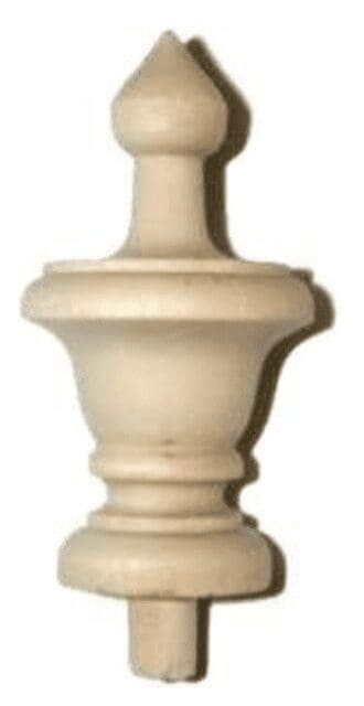 W1-6209… Turned Hardwood Spindle Finial. Turned Length is 3 3/32″. Overall Length is 3 3/4″. Maximum diameter is 1-5/8″. Tenons diameter is 3/8″. Sold individually.