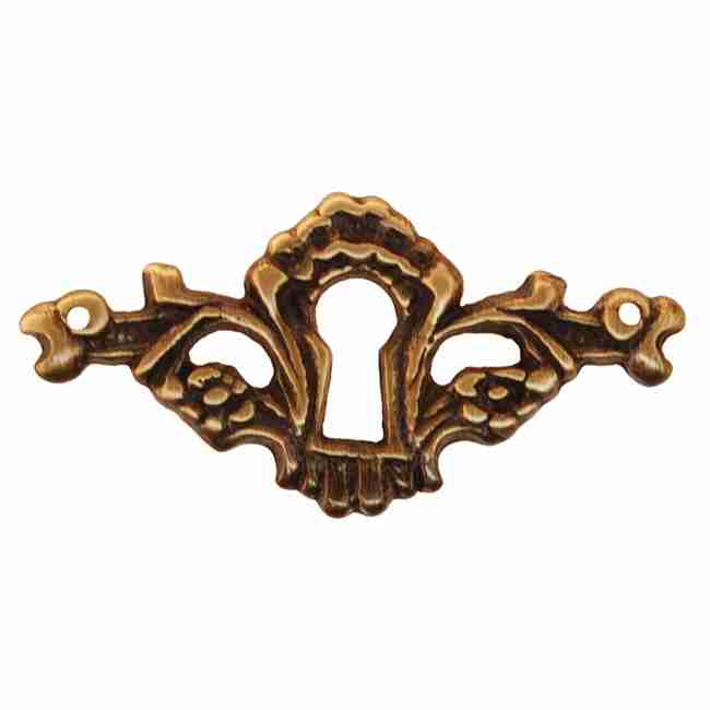 BM-1201AB… Victorian key hole cover. Antique solid cast brass. Used on a lot of oak furniture from victorian times through the 1930s era. A nice accompanying item to our ANTIQUE BRASS DRAWER PULLS. Overall measuring 2-1/4″ by 1-1/8″. Sold individually with mounting hardware.