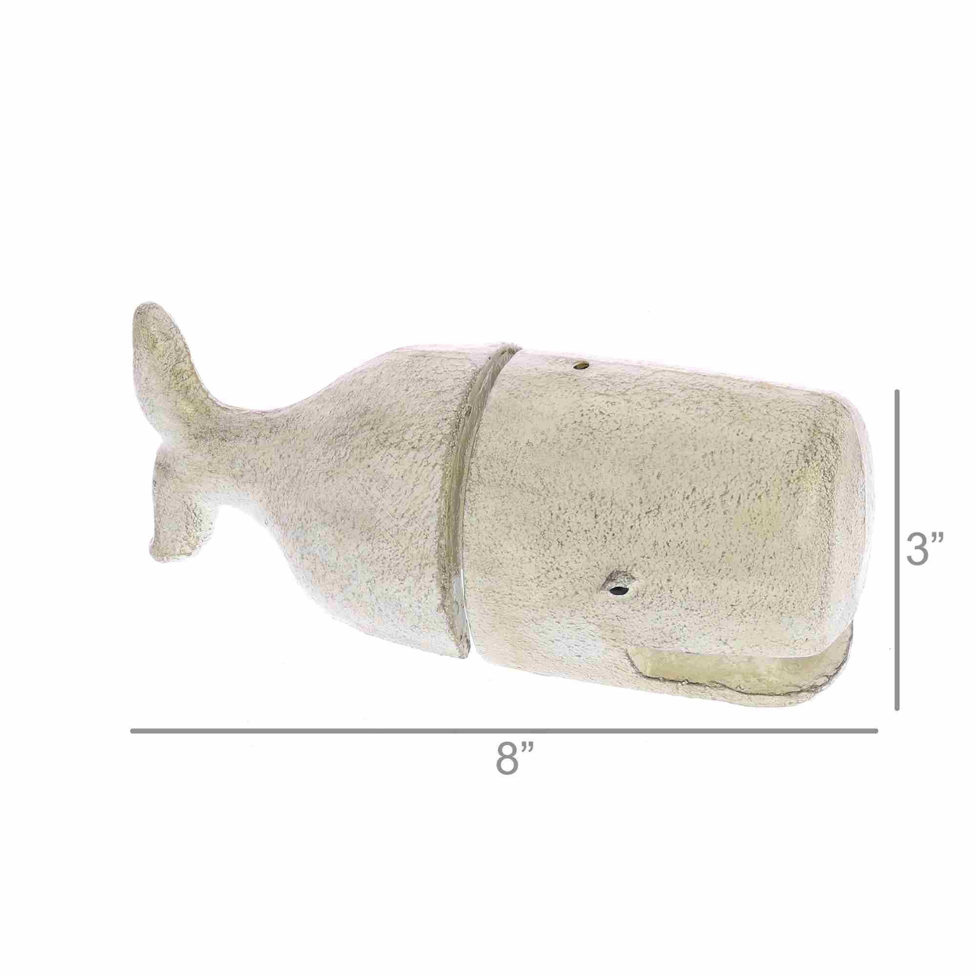 HA-1604-6… White Cast Iron whale bookends. We have captured the popular cast iron whale bookend in white, simply yet effectively hand painted. Adding a homey and artsy accent to a bookshelf or countertop area. Overall measuring 8″ long x 3″ wide x 3″ tall. Sold in quantities of 2.