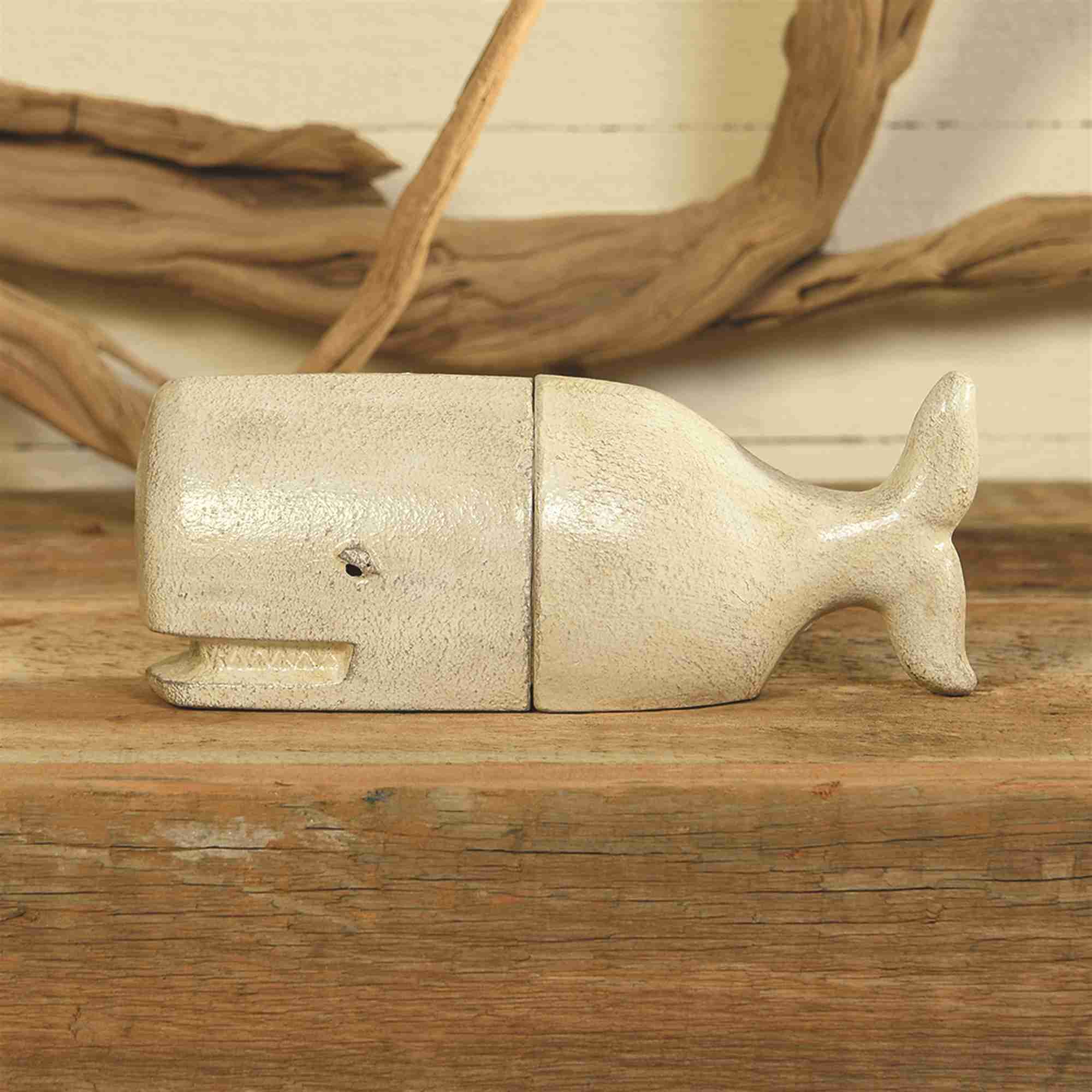 - White cast iron whale bookends